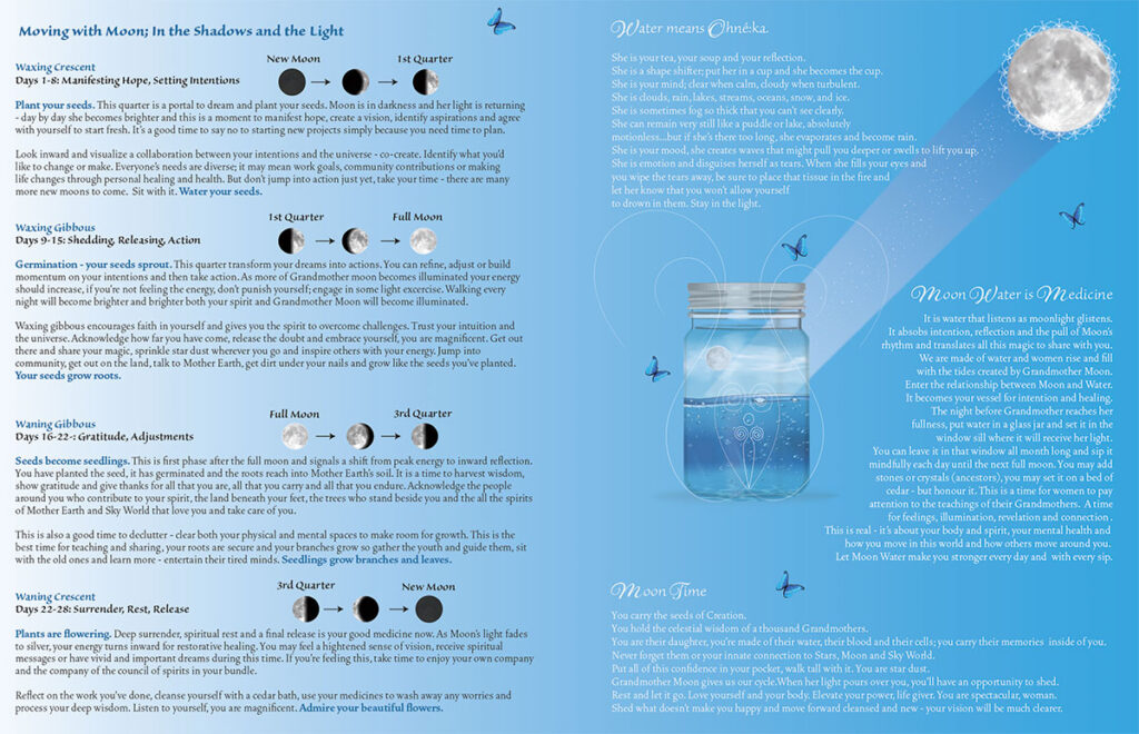 Walking In Her Moccasins is an amazing project by the Congress of Aboriginal Peoples and is fully designed by Pass The Feather. This book 'Bundle' is published both in print and on line and can be found at www.walkinginhermoccasins.org